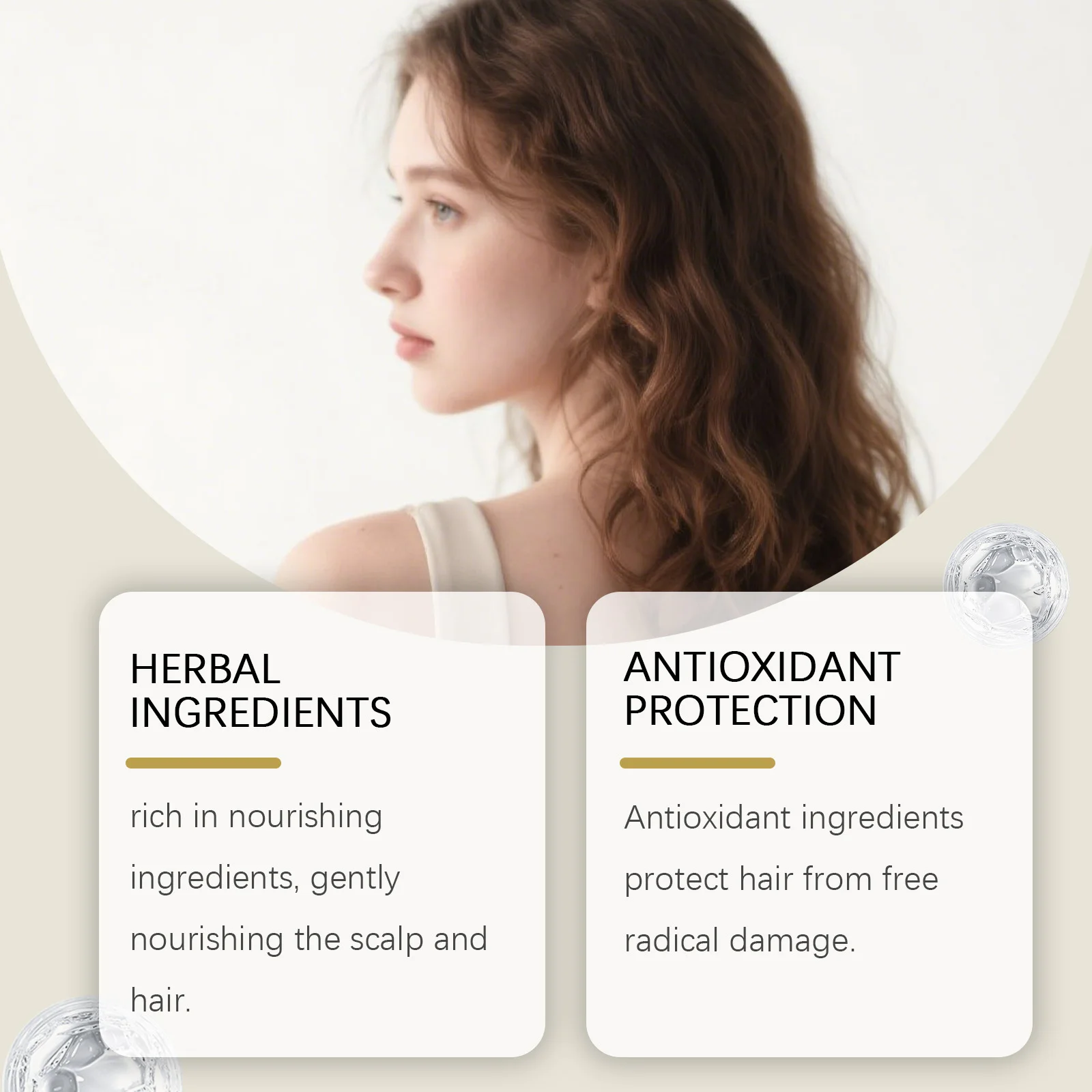 1. Herbal ingredients: rich in nourishing ingredients, gently nourishing the scalp and hair.