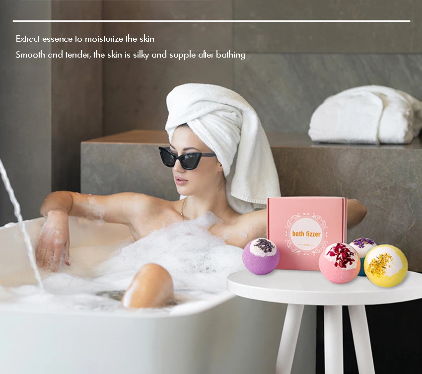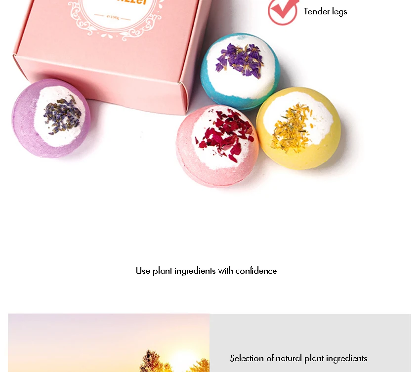 4PCS/Set Bath Bomb Gift Set for Women, 100g Aromatherapy Bath Bombs with Sea Salt, Plant Extracts, Spa Relaxing Bubble Bath Bomb