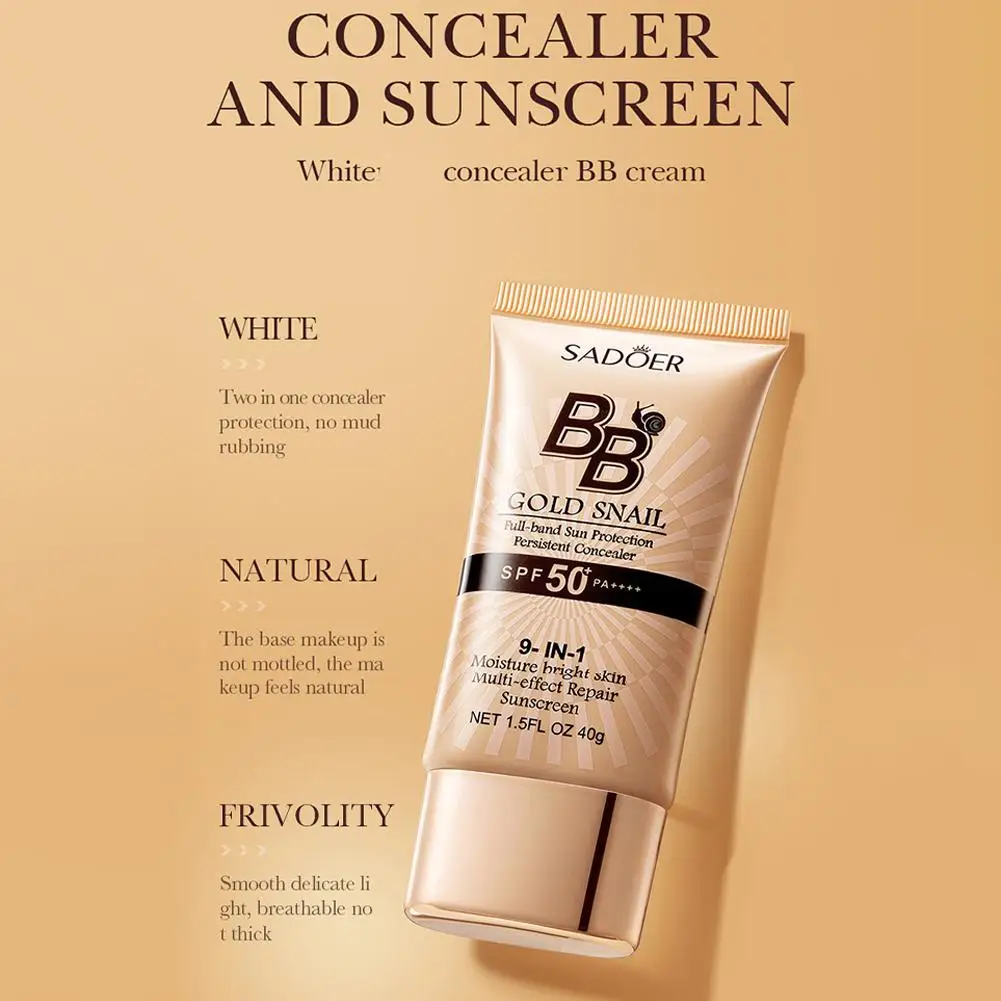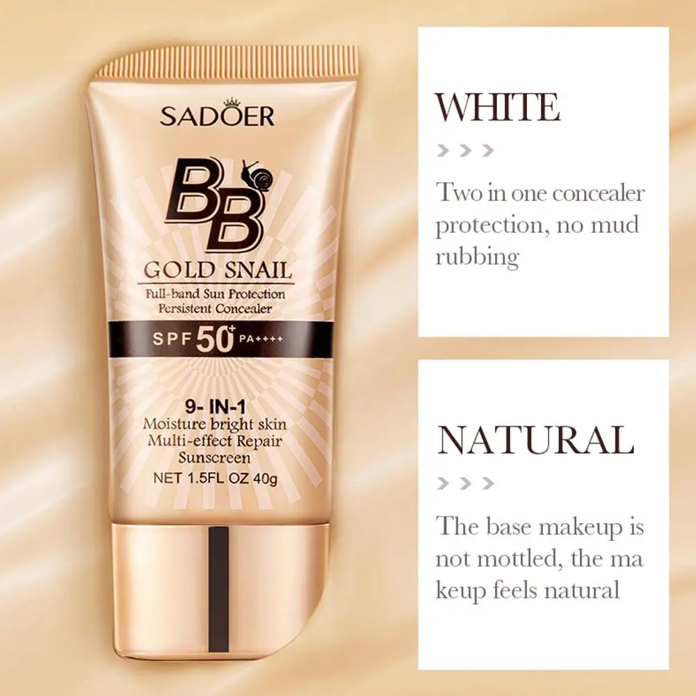 SADOER Gold Snail Sunscreen BB Cream Foundation Concealer Moisturizing Isolation Cream SPF50+PA+++ 40g Facial Moisturizer