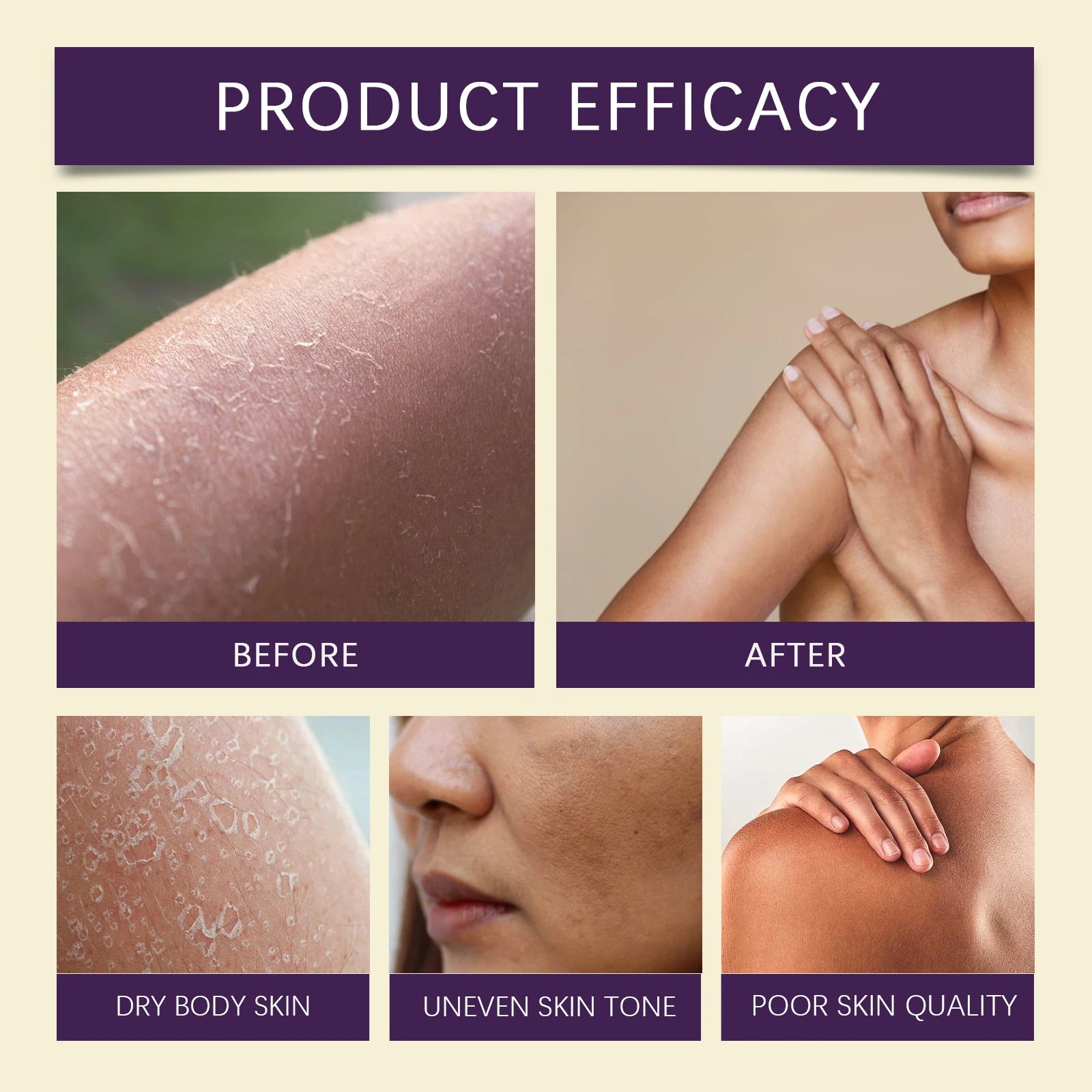 2. Apply an appropriate amount of this product evenly on the body skin.