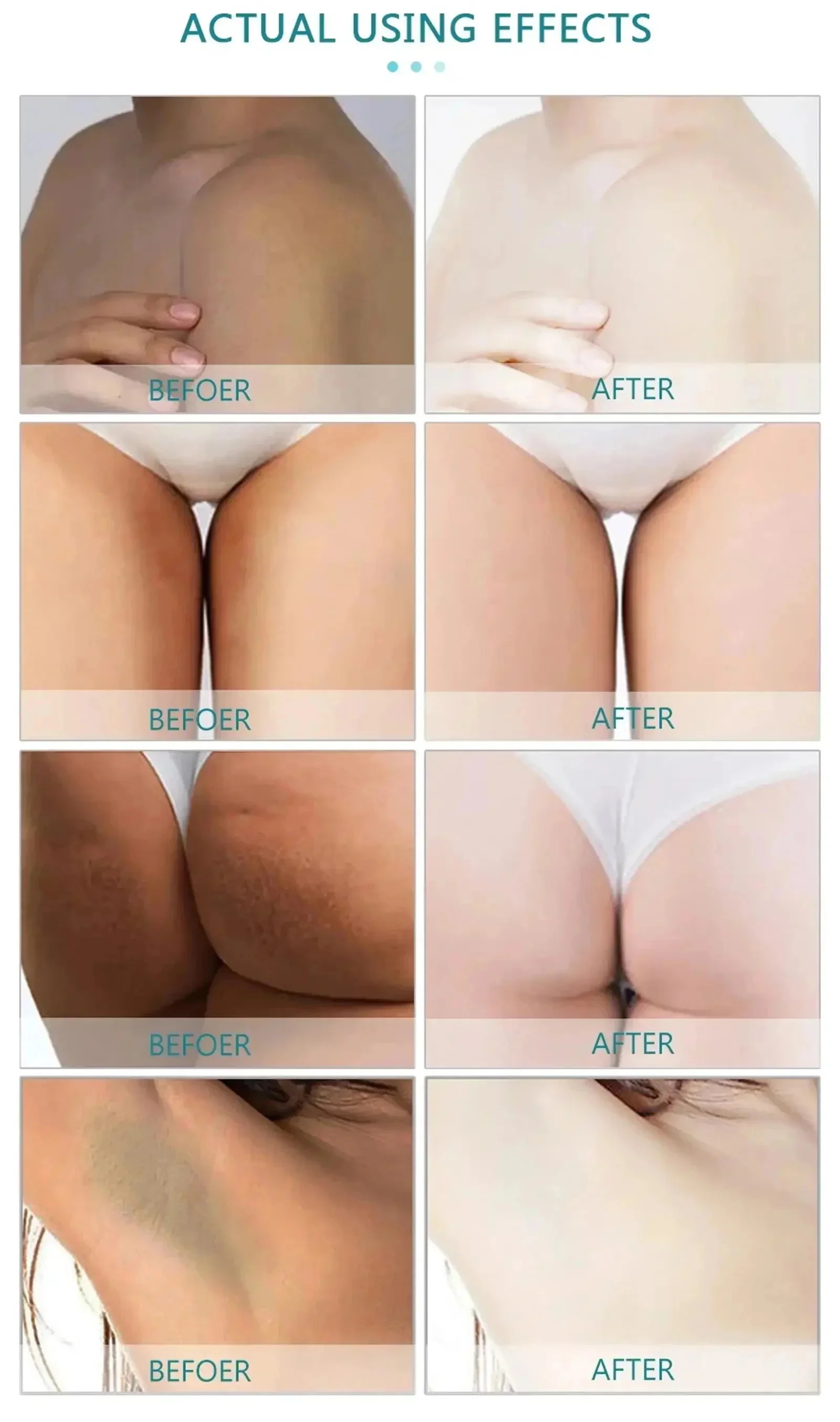 Efficacy: Not only Brighten the skin (Brightening cream that helps the skin achieve a shine glow in a short period of time) but also adds to it a portion of natural organic nutrients, and the skin after our product smooth as the baby.Also, It can correct excess pigmentation caused by hair removal,hormones or sunburn.