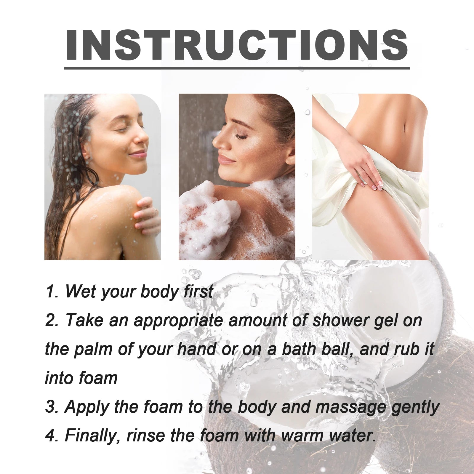 Oceaura Coconut Vanilla Body Wash Gel Lasting Fragrance Deep Cleaning Dirt Nourishing Moisturizing Skin Remove Odor Body Shampoo
