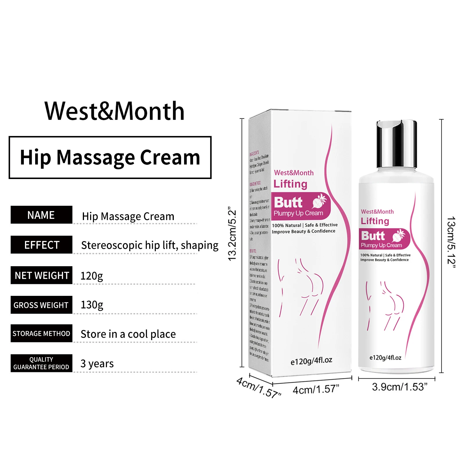 West&Month Butt Enhancement Cream Lifting Firming Buttock Elasticity Sculpt Plump Prevent Sagging Hip Lift Tightening Up Massage Cream 120g Free Shipping