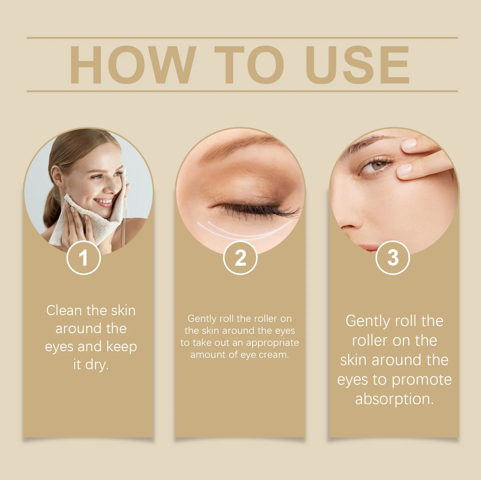 2. Gently roll the roller on the skin around the eyes to take out an appropriate amount of eye cream.