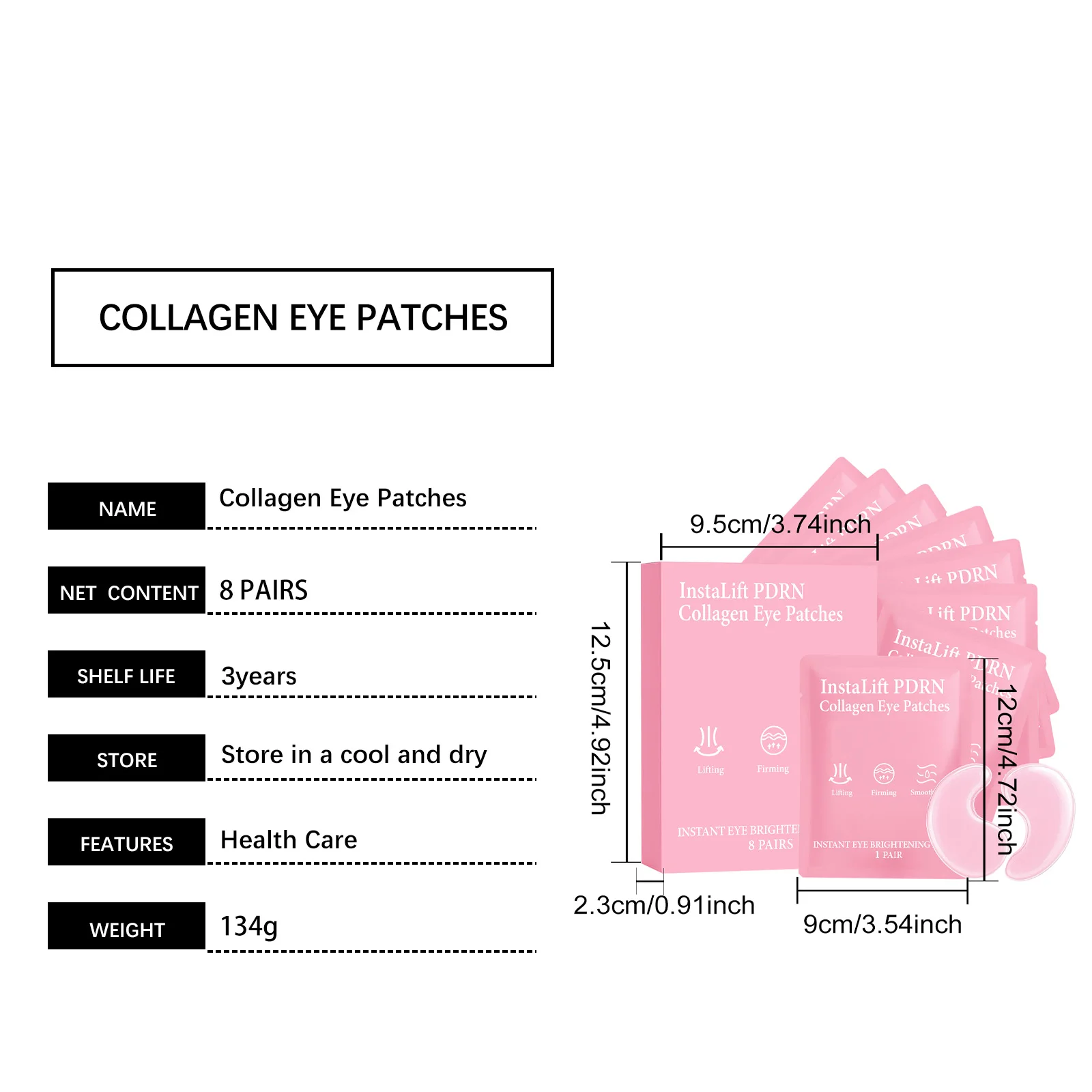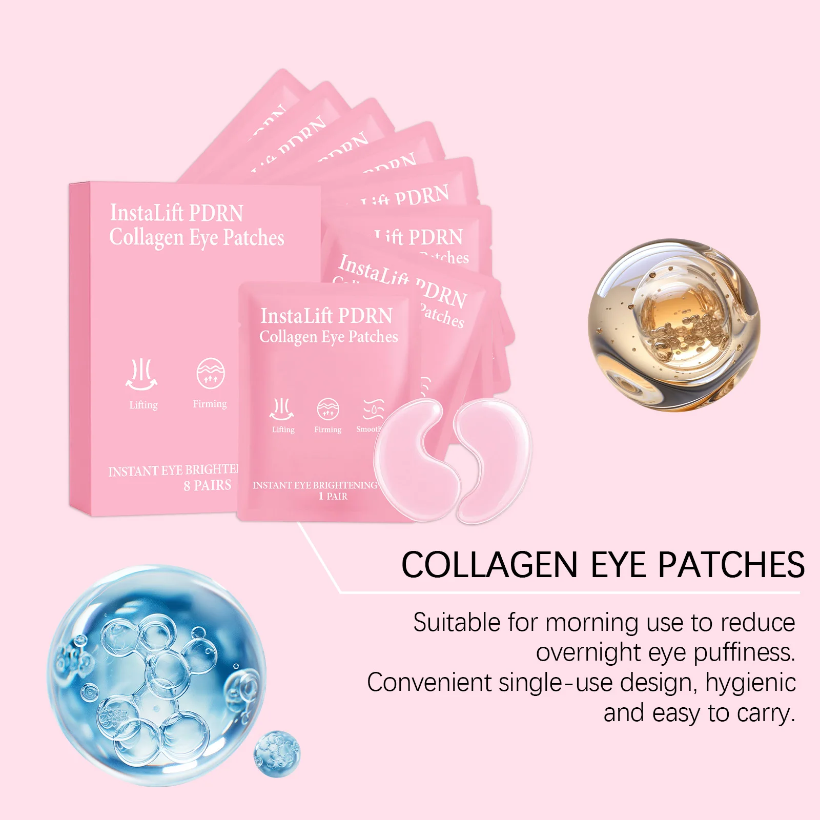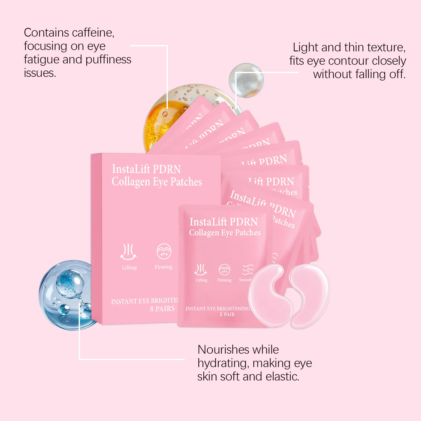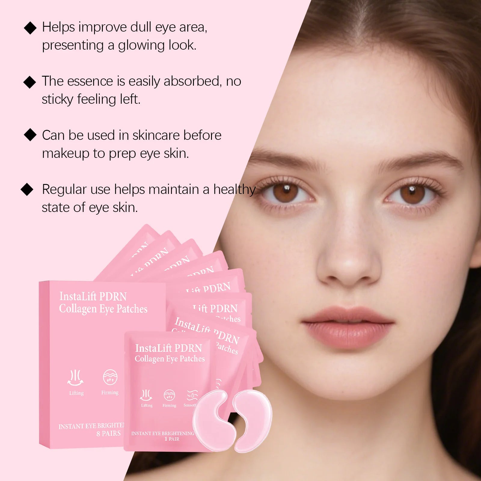 【Hydrogel Design】The instalift pdrn & collagen eye patches use an advanced hydrogel material to form a gentle, occlusive layer that locks in the active ingredients, ensuring deep penetration into the skin. Suitable for all skin types, this pdrn eye patch is free of parabens and irritating ingredients.