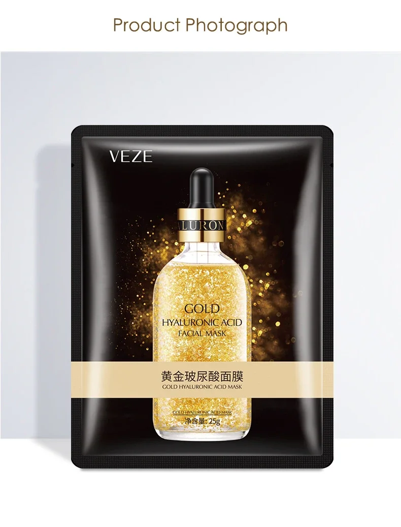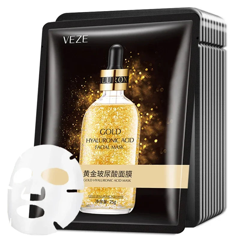 10pcs 24K Gold Hyaluronic Acid Face Mask Firming Moisturizing Hydrating Beauty skincare Sheet Masks Facial Mask Face Care
