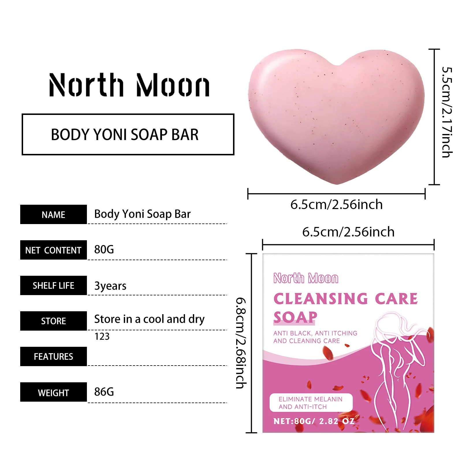 North Moon 80g Feminine Care Yoni Soap Cleansing Body Remove Odor Itch Intimate Part Hygiene Soothing Private Part Care Soap