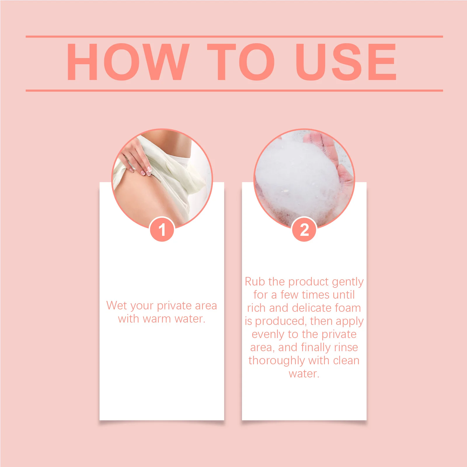 2. Rub the product gently for a few times until rich and delicate foam is produced, then apply evenly to the private