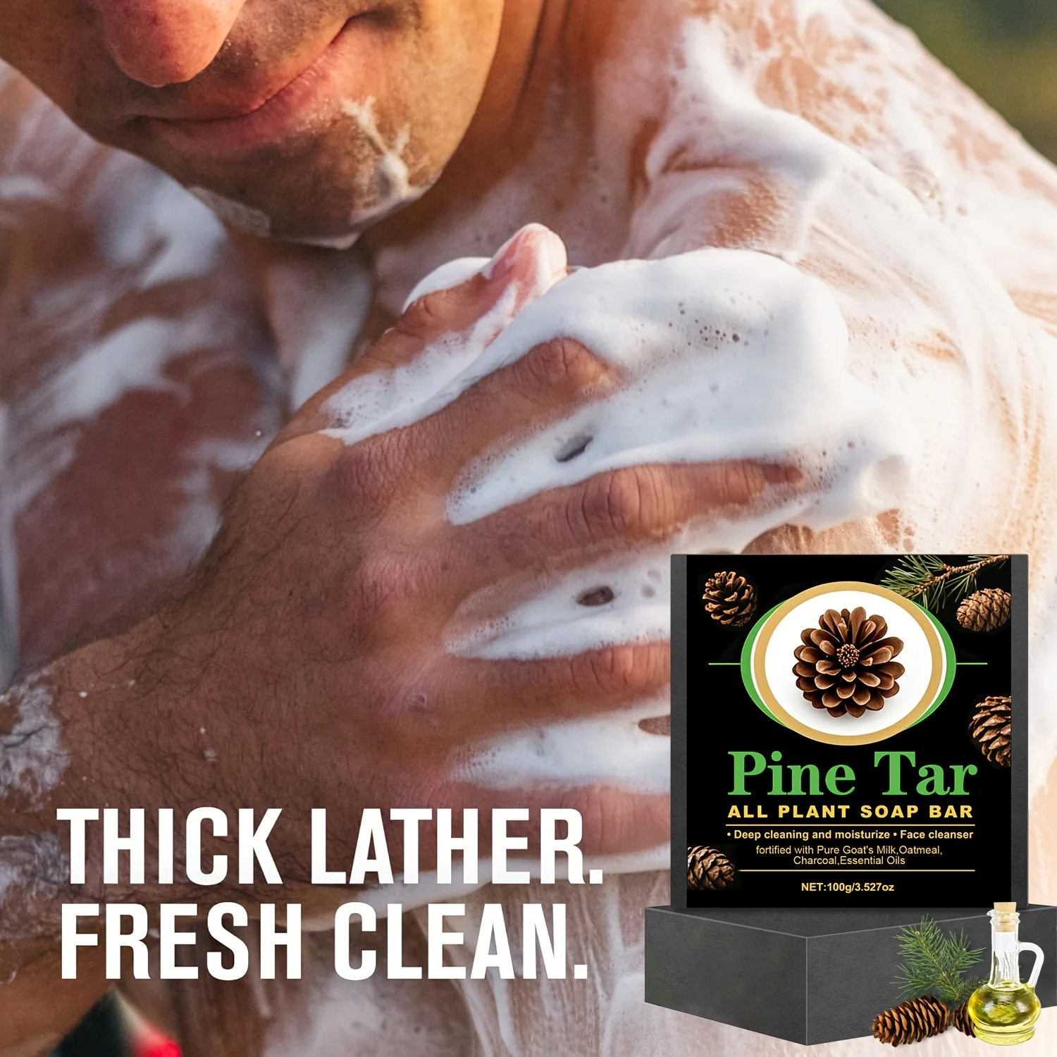 Men's Pine Tar Soap Bar Deep Cleansing Body Soap with Natural Pine Tar & Glycerin,No Phthalate,Moisturizing Exfoliating Formula