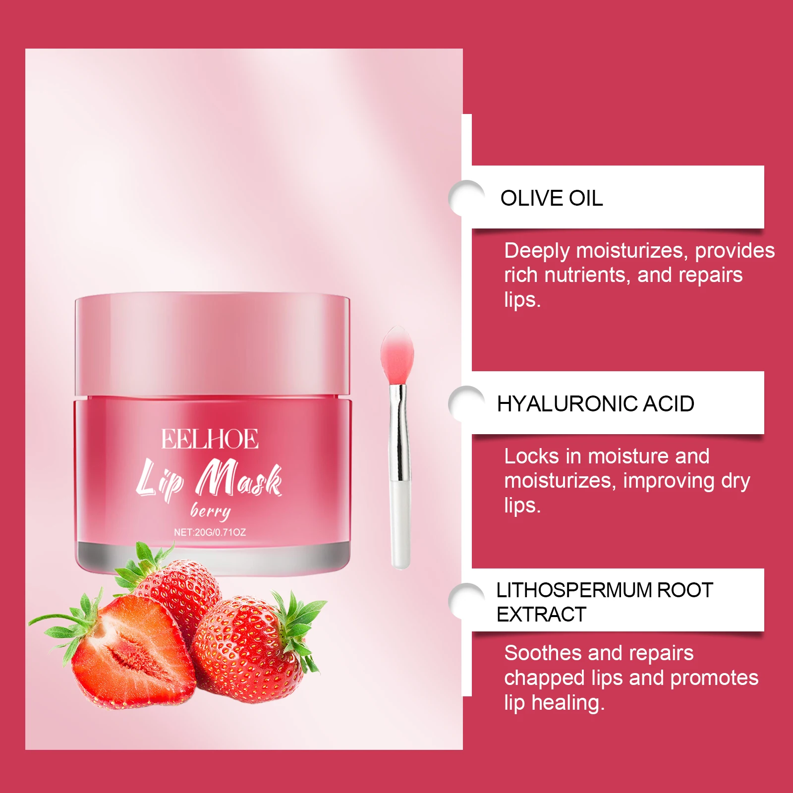 1. Intensive nourishment at night: Mineral oil and strawberry seed oil are combined to inject nutrients into the lips at night, deeply improve dryness, and make the lips soft and moist in the morning.
