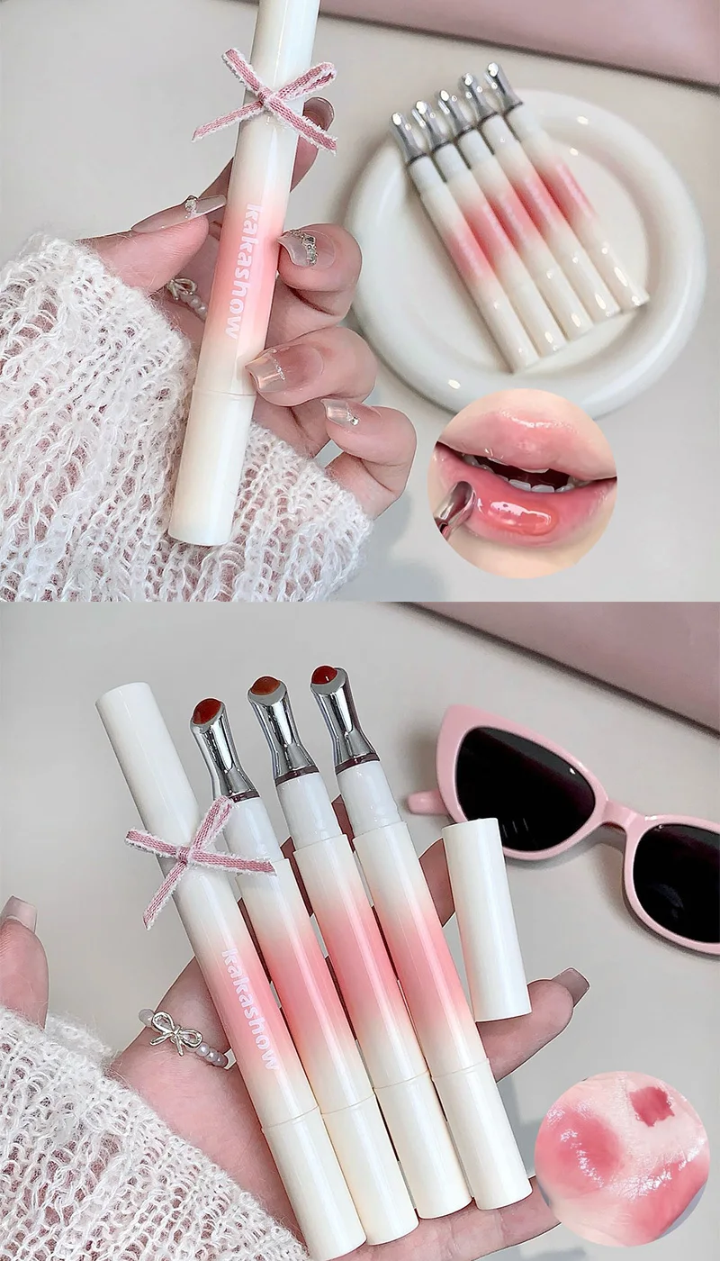 Kakashow Mirror Watery Lip Gloss Iron Brush Head Jelly Lipgloss Moisturizing Lip Tint Lipstick Nature Nude Lips Makeup Cosmetics