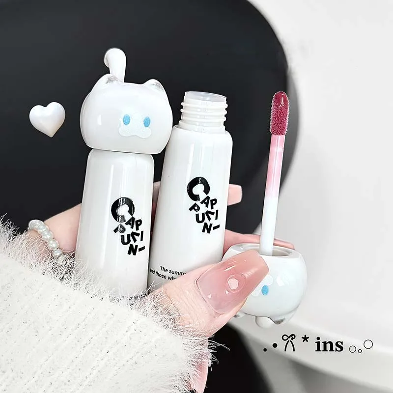 CAPPUVINI Cute Cat Water Mirror Lip Gloss Lasting Moisturizing Rose Apricot Pink Tint Lip Glaze Nude Lipstick Korean Makeup Girl