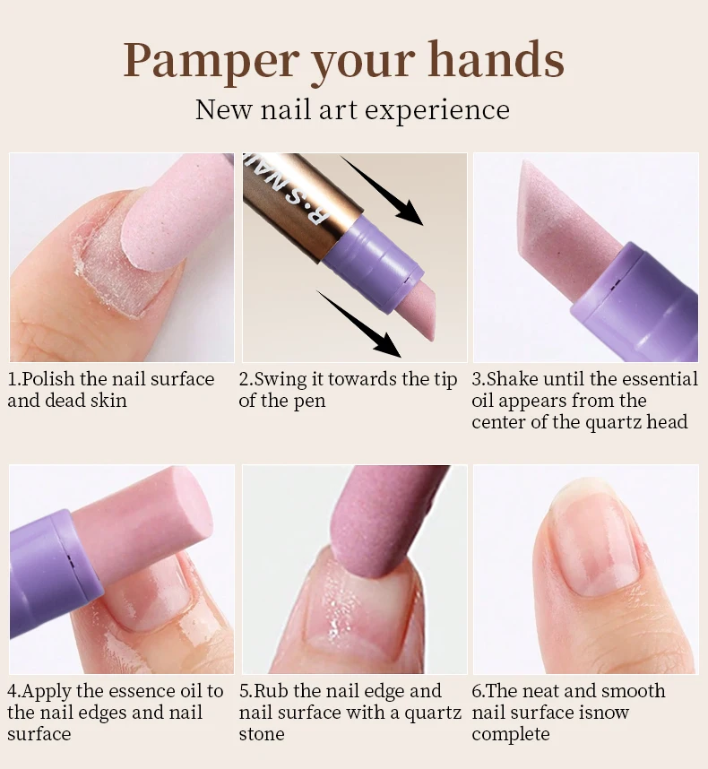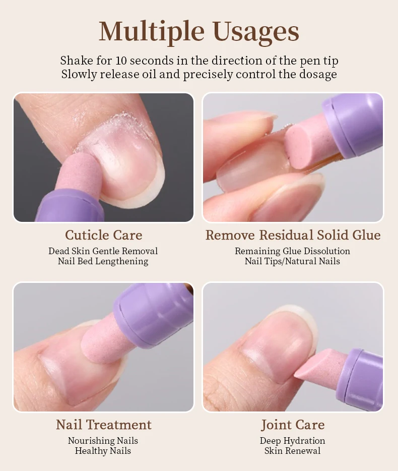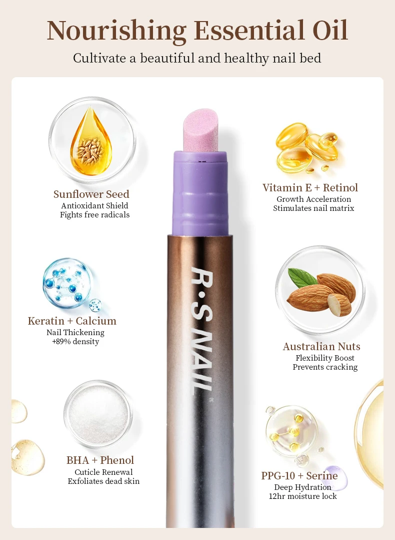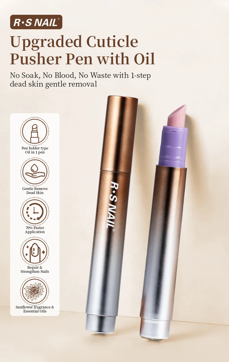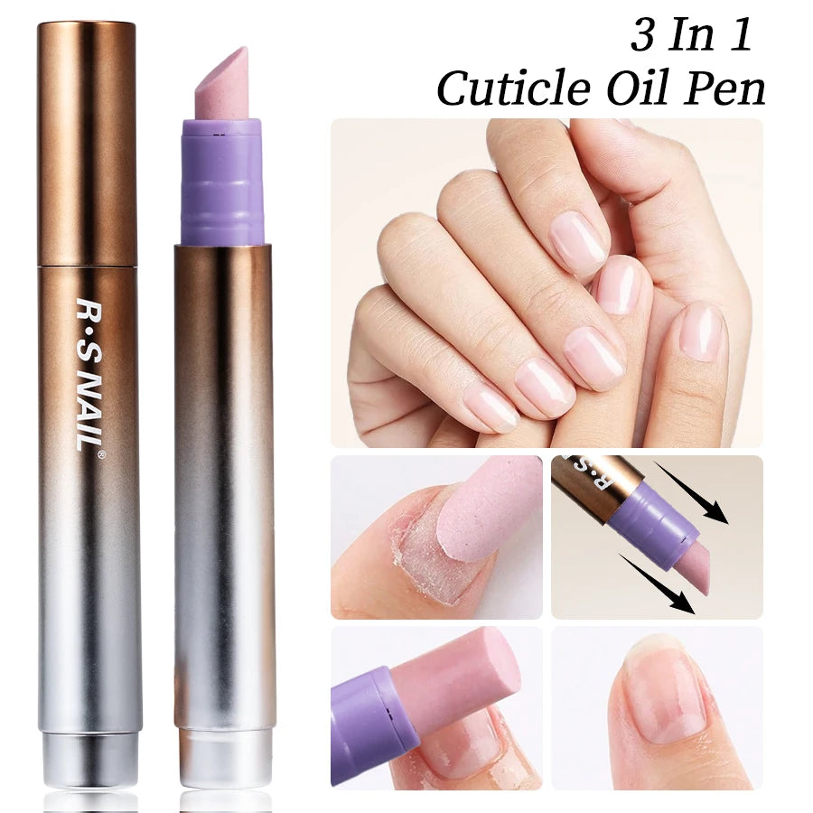 RSNAIL 3-in-1 Cuticle Oil Pen with Ceramic Nail Pusher for Hangnails Dry & Damaged Nails - Nail Care Pen for Repair & Nourishment