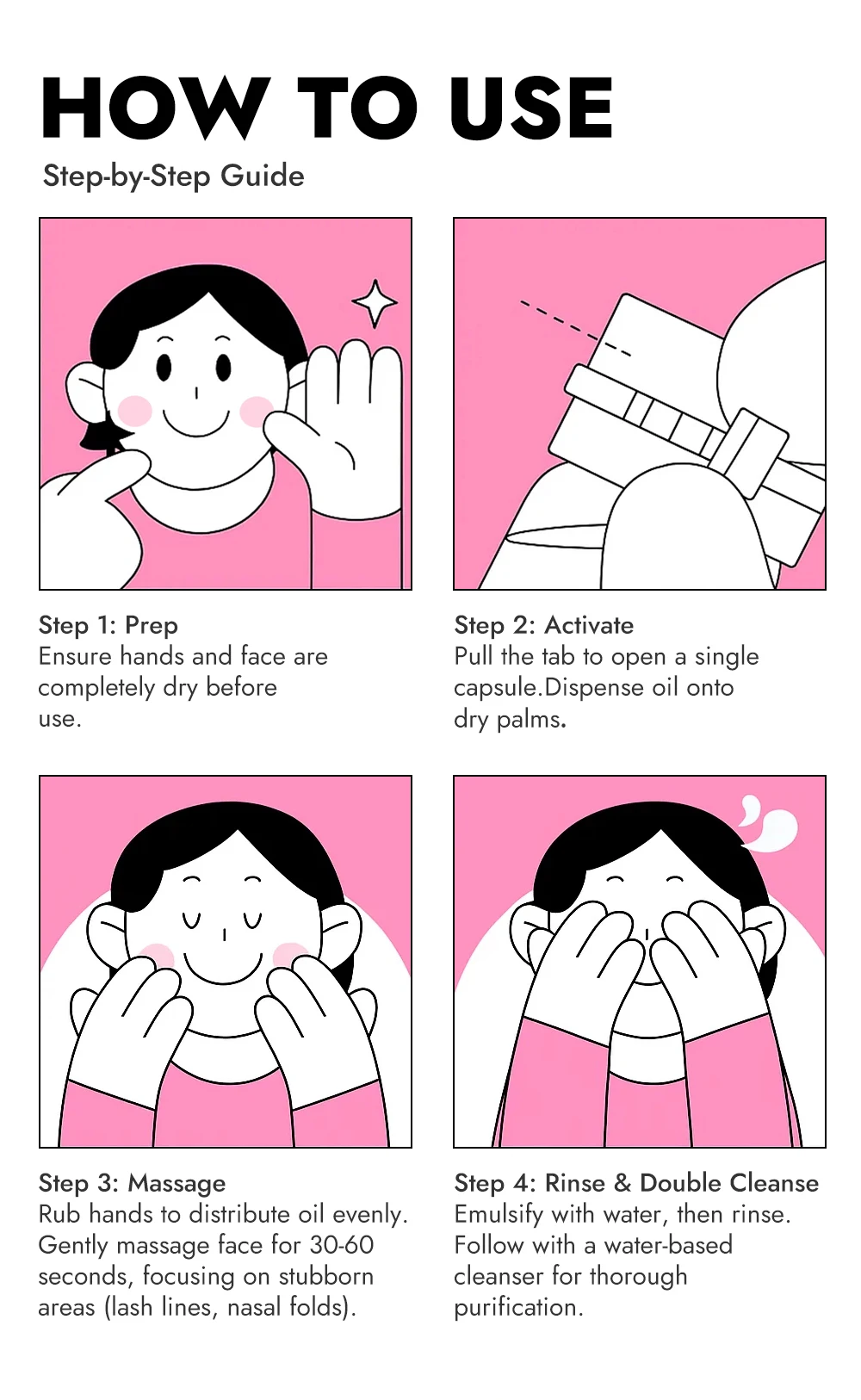 Achieve effortless makeup removal with Cleansing Oil, which provides thorough cleansing and leaves skin moisturized. A portable solution, perfect for women and men at home or travelling. Whether traveling outdoor, heading to festivals, or preparing for weddings, this natural cleanser suits everyone, from college students to apartment dwellers, even school teachers. Great for photo sessions too.