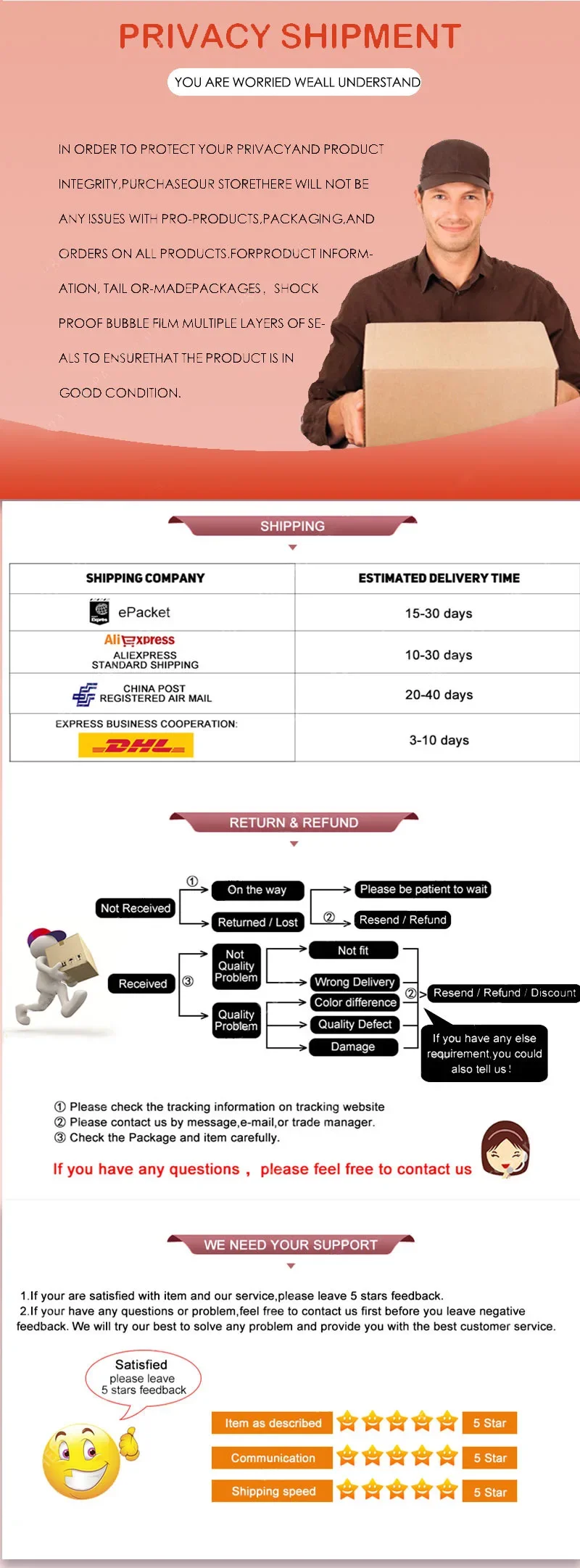 Ex: Shipping and return policies, size guides, and other common questions.