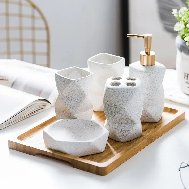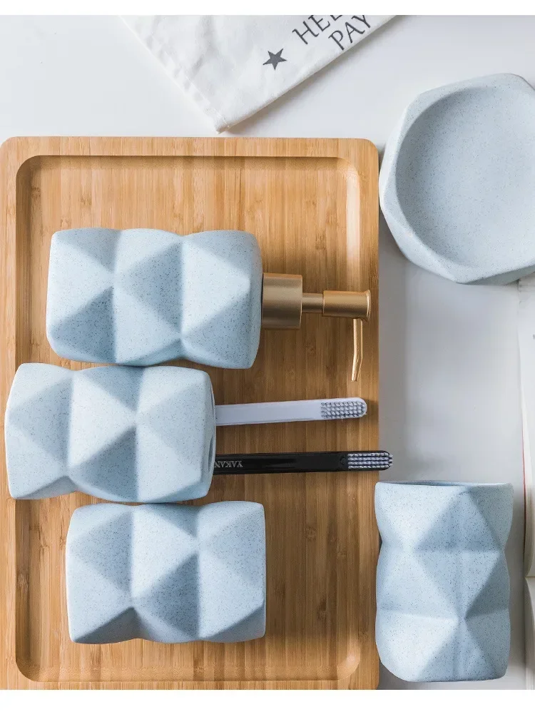 Ceramic Bathroom 4-piece Set Nordic Style Bathroom Supplies Ornaments for Gift Giving Mouthwash Cup Toothbrush Cup Set