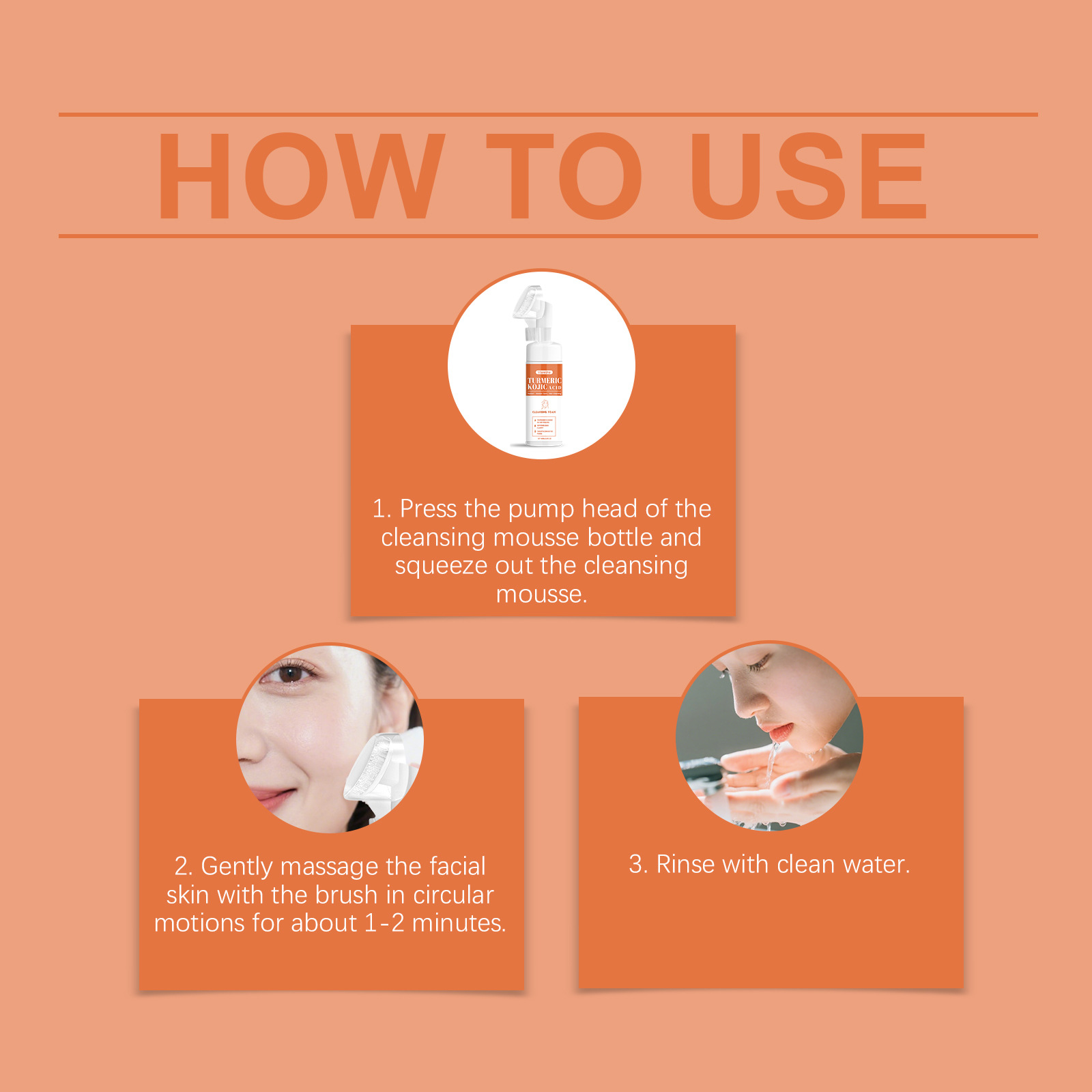 2.Gently massage the facial skin with the brush in circular motions for about 1-2 minutes.