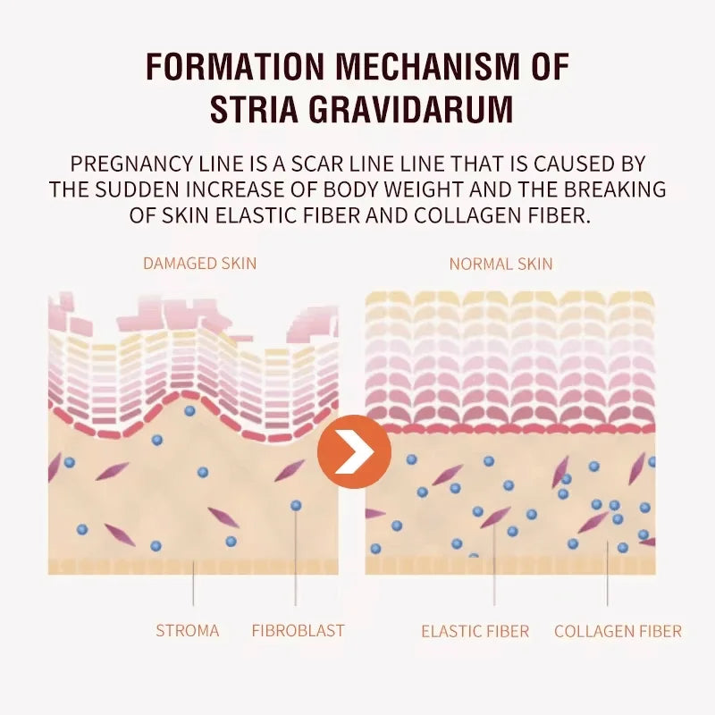 Advantage: Our stretch mark removal cream contains high concentrations of natural ingredients which can deeply penetrate into the skin to repair damaged elastin fibers and promote skin regeneration and help you restore the skin's elasticity and smoothness.