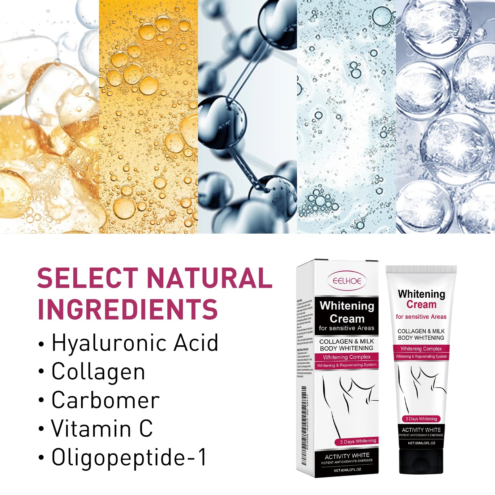 EELHOE 60ml Underarm Whitening Cream Dark Skin Improve Melanin Pigmentation Bleaching Brighten For Underarms Knees Elbows Care