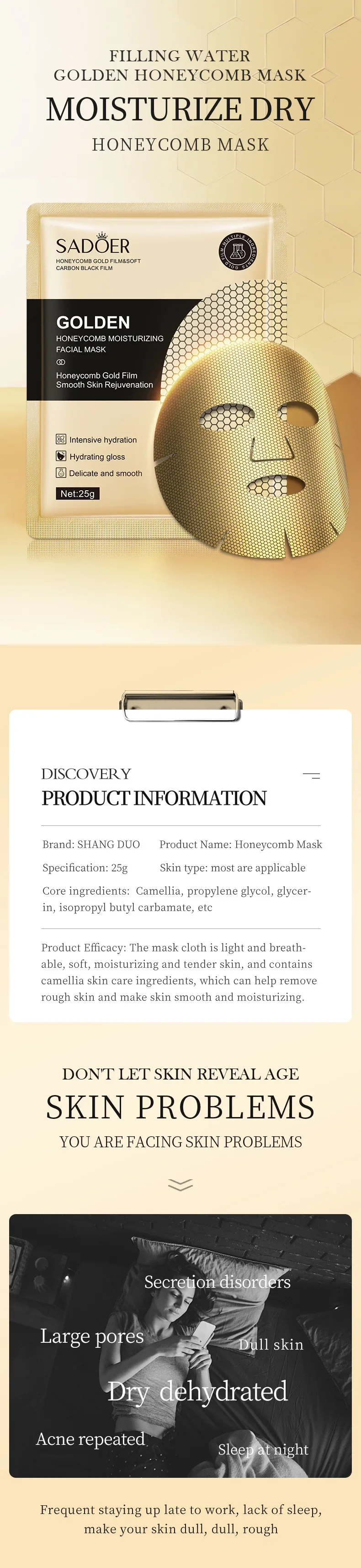 20pcs SADOER 24K Gold Moisturizing Facial Masks skincare Firming Nourishing Smooth Skin Rejuvenation Face Mask Sheets Mask