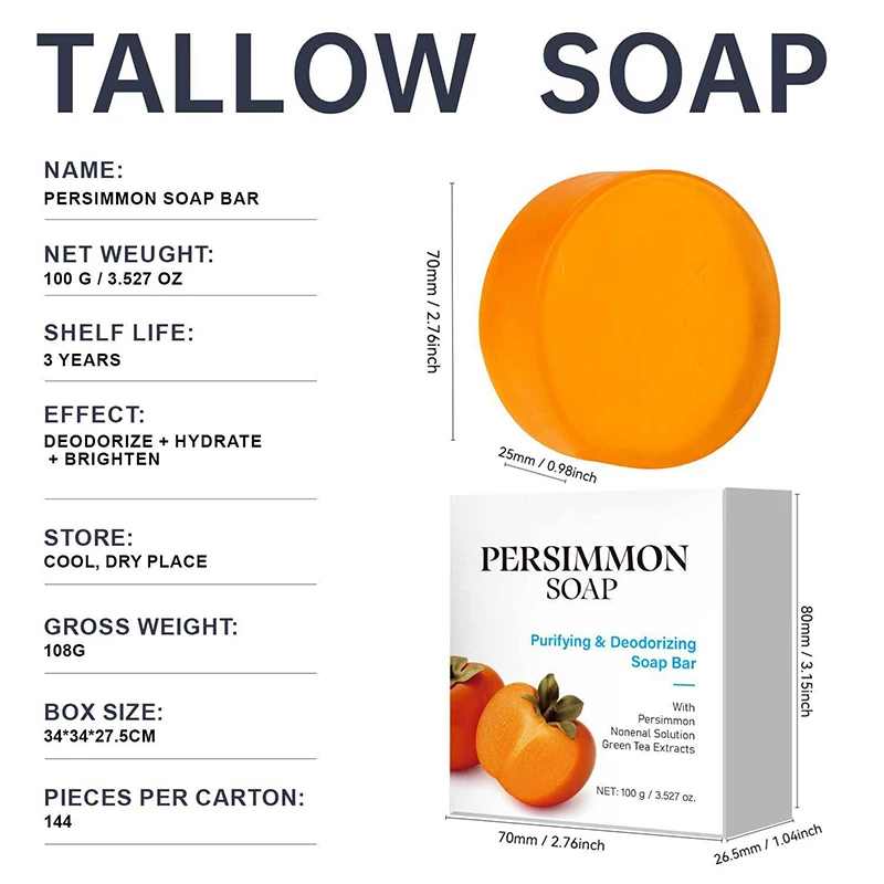 5.COMPACT & LONG-LASTING: This natural deodorizing persimmon soap bar offers a long shelf life and compact size, making it easy to store and ideal for everyday use without taking up much space.