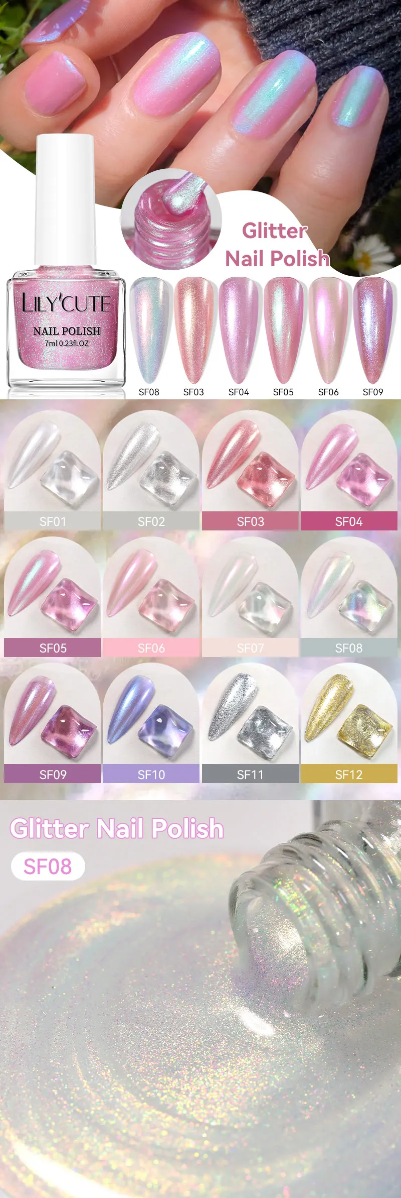 LILYCUTE 7ml Glitter Nail Polish