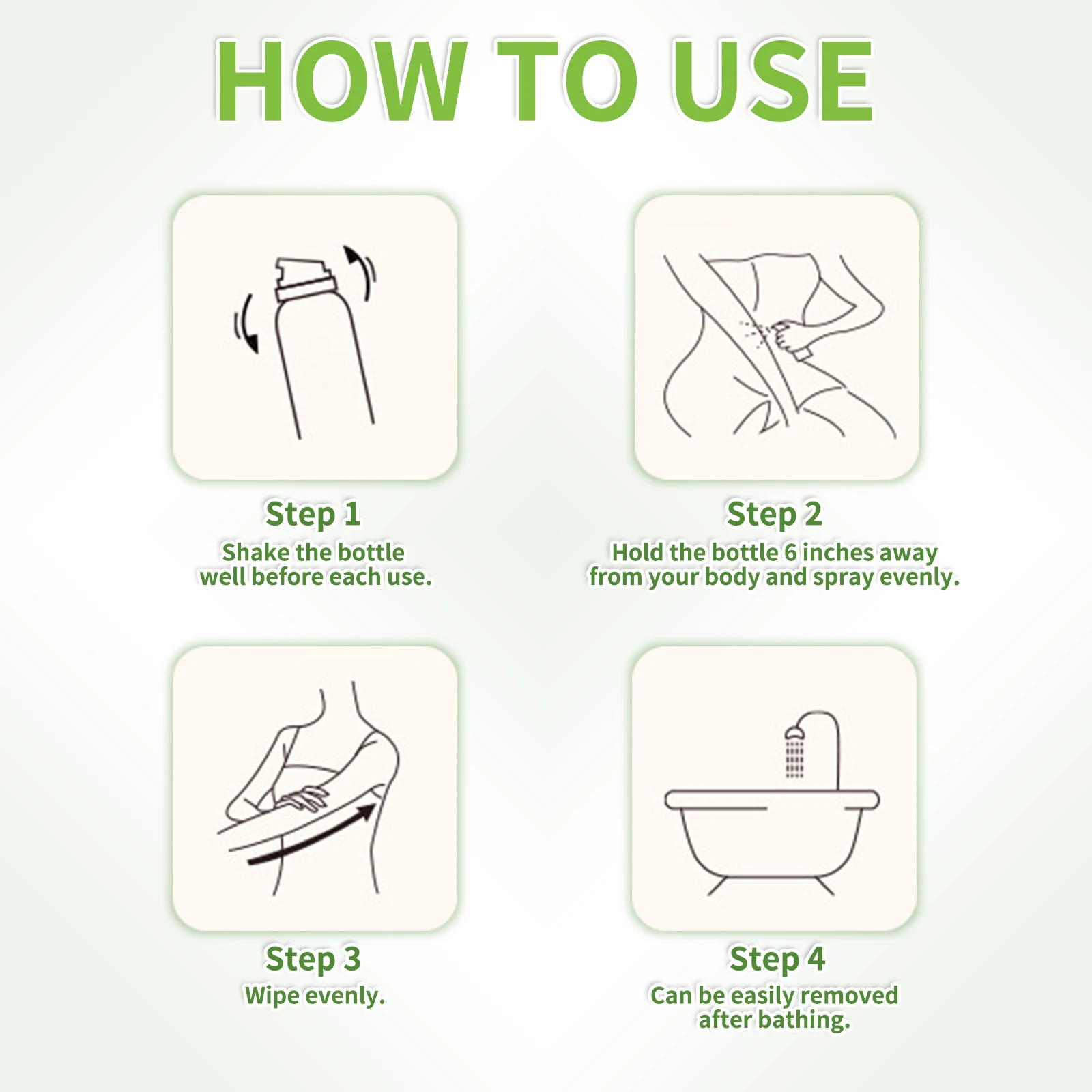 Uniform Spray: Spray evenly about 15 centimeters (6 inches) from the body